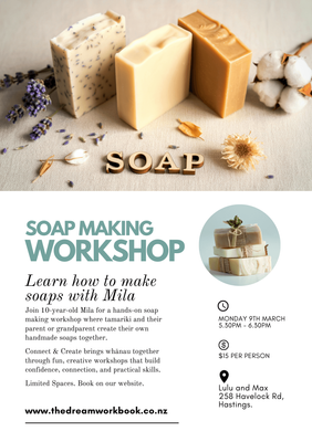 Join 10-year-old Mila for a hands-on soap making workshop where tamariki and their parent or grandparent create their own handmade soaps together.